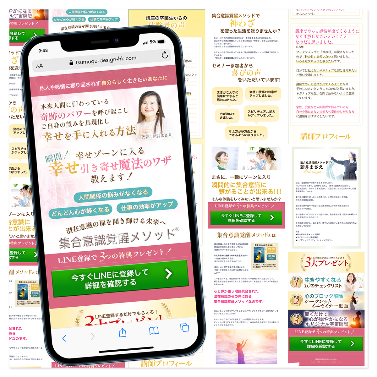 30代〜女性向け、スピリチュアル系の雰囲気に合うようデザインしています。